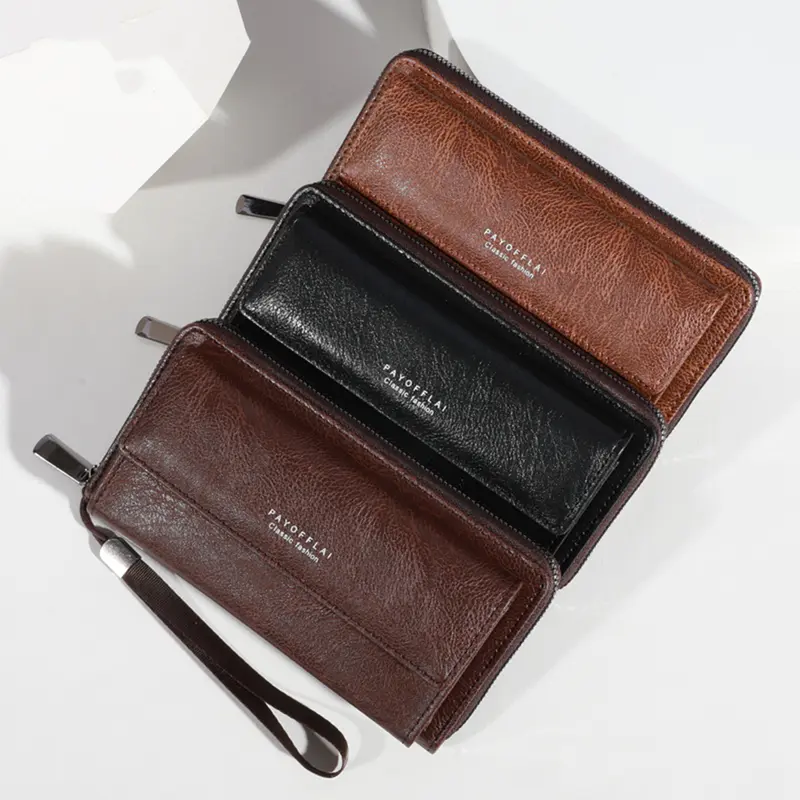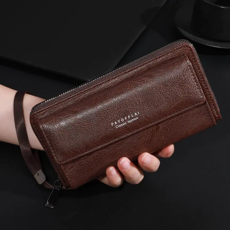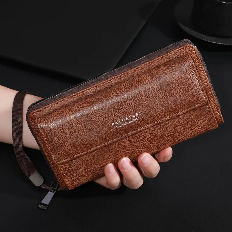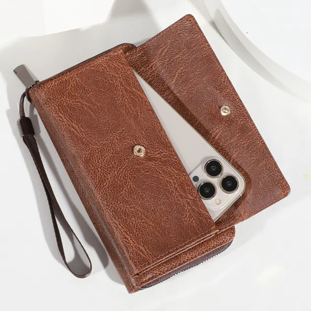 Dompet Pria Panjang Dompet Gaya Retro Kapasitas Tinggi Dompet Lipat